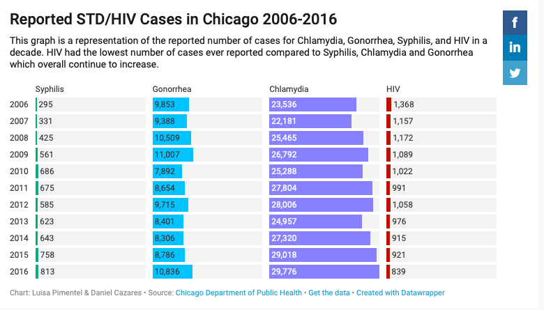 Having access to healthcare facilities is crucial. Within the same 2017 surveillance report, economic hardship was insinuated to have some sort of correlation to high rates of chlamydia and gonorrhea. Areas affected included Uptown, Austin, Englewood, West Englewood, Riverdale, Edgewater, and many more; with Austin and Englewood counting on STD/HIV clinics that do not offer free services.